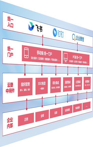 对协作平台提供支持服务,,支持企业应用与协作平台对接,,,,包含组织同步、、消息集成、、、、待办集成等。。支持目前主流的协作平台:钉钉、、、、企微和飞书。。。